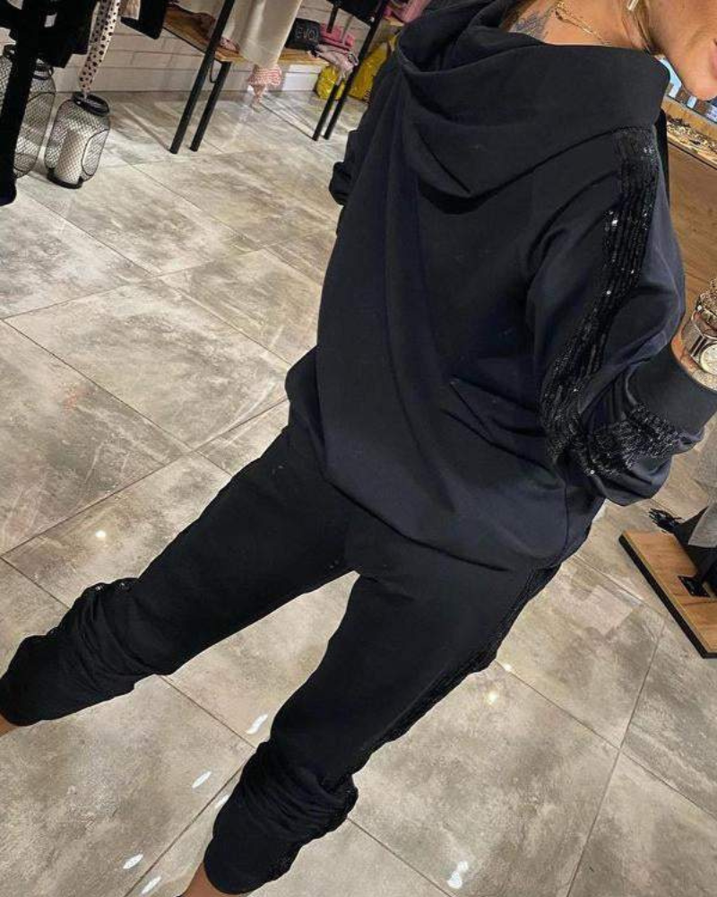 ✅Stylish Sequined Detailing: The Gretta Two-Piece Set is elevated with shimmering sequined panels along the sleeves and pant legs. These accents catch the light beautifully, adding a subtle yet captivating shine to your everyday wear. It perfectly balances casual ease with a hint of glamour, making it ideal for both lounging and going out.